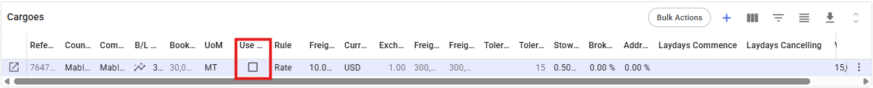 The intake quantity is then the minimum of all the previously explained values. Changing port calls, vessel, or other values that affect either of the maximums will automatically update the cargo quantity if the feature is enabled for the cargo.