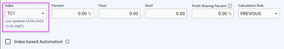 In the Index-Based Rate section, you can specify a particular Index (Market Index) the TC rates should follow.