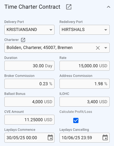 <figure><img src="https://content.gitbook.com/content/md37qFD2XkvN6S9sVg85/blobs/Uol8g9DnBWmfh8IeMA3B/VoyageDrawerOverviewTcSection.png" alt=""><figcaption><p>Time Charter Contract Section on Voyage Overview</p></figcaption></figure>