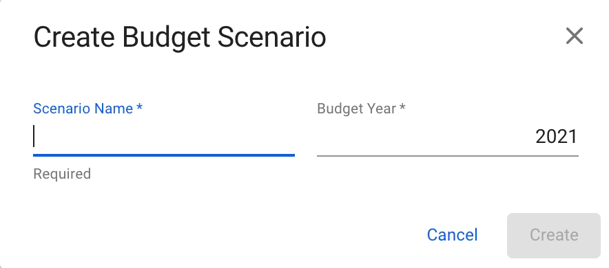Fill in all required fields listed below in the Create Budget Scenario window.