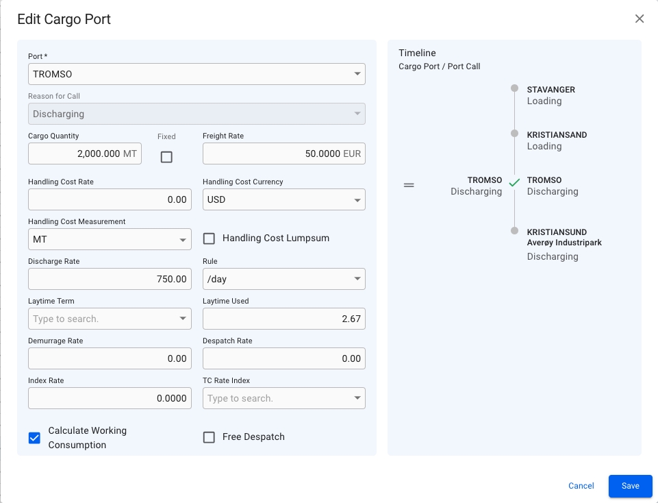 Editing a Cargo Port will give you access to a few more fields, for instance Handling Cost, Laytime Terms and related fields.