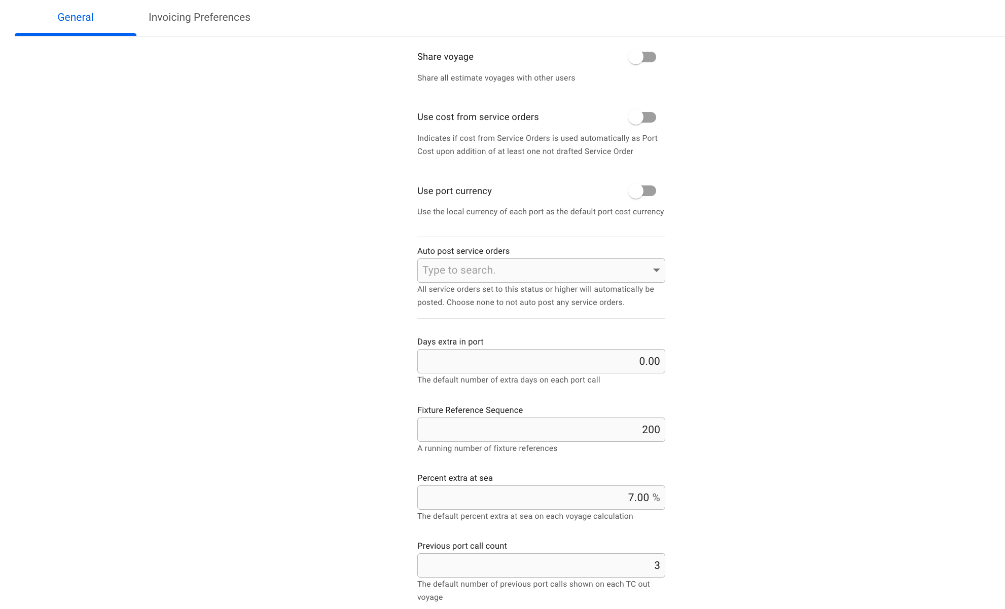 • When the setting is enabled, all estimate voyages may be edited by other users than the creator.
