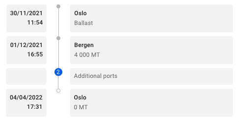 You can select the number of ports to show in the port call timeline either by moving the slider or by typing in a number. The ballast, first loading and last discharging ports are always visible.