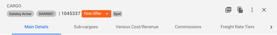 By clicking the various tabs you get the relevant information about the cargo. Check out the next pages for information about the different tabs.