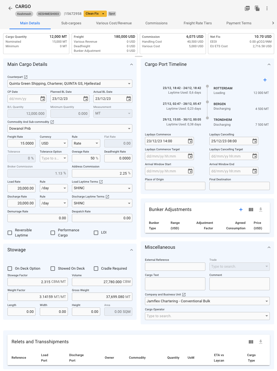 To maintain the cargo click the cargo in the list. The selected cargo will be opened in a cargo drawer where you can edit fields, copy cargo, create a pdf from the booking and so forth. Click the cargo drawer page here to see more details.