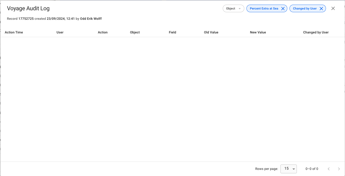<figure><img src="https://content.gitbook.com/content/JhyVcvJBzVdJKycXnSTF/blobs/HlNoYHLJUM8UHcqwzlkV/image.png" alt=""><figcaption><p>Percent Extra at Sea field Audit Log without Changed by User filter</p></figcaption></figure>