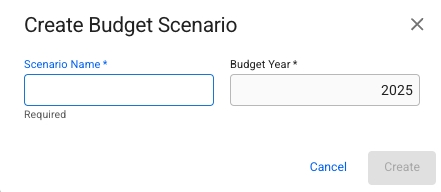 Fill in all required fields listed below in the Create Budget Scenario window.