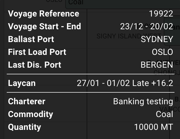 More additional information on the voyage and its cargos are displayed in the voyage drawer. This can accessed by clicking on a commitment- or schedule bar.