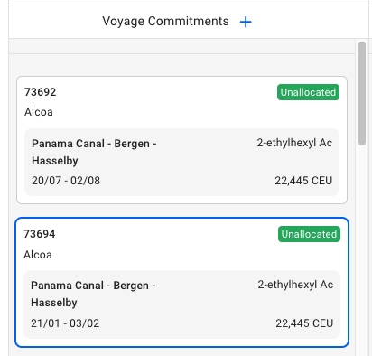 In the Voyage Commitments column, the left-most column of the board, we have a list of Unallocated Voyages with a new design: