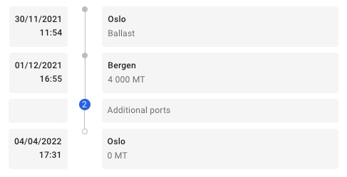 You can select the number of ports to show in the port call timeline either by moving the slider or by typing in a number. The ballast, first loading and last discharging ports are always visible.