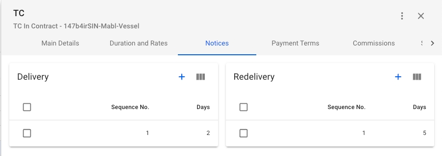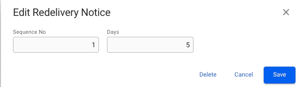 -icon in either of the sections you can create notices. By clicking on the notices in the Delivery or Redelivery lists in the Sections you can edit and delete notices.