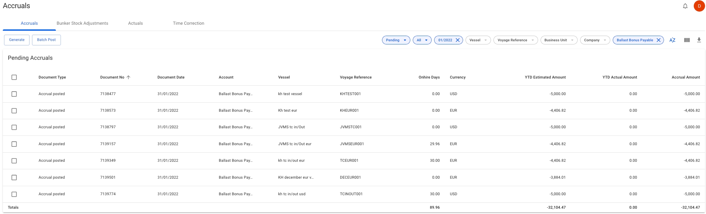 When clicking the Accruals tab you will be presented with a list of all the accruals.