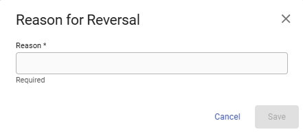 In the upper right corner there is a reverse button besides the three dotted button. Clicking this button opens up the 'Reason for reversal' modal, as shown in the picture below. In this modal you must specify a reason for why this bunker transaction is being reversed.