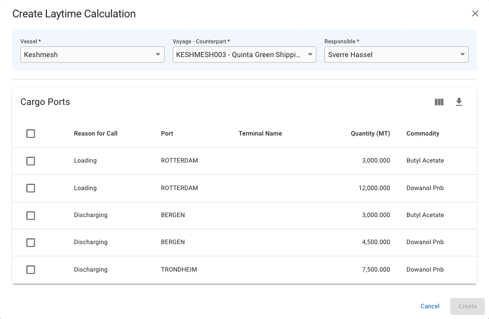 * Only available when not creating a laytime calculation from the voyage drawer.