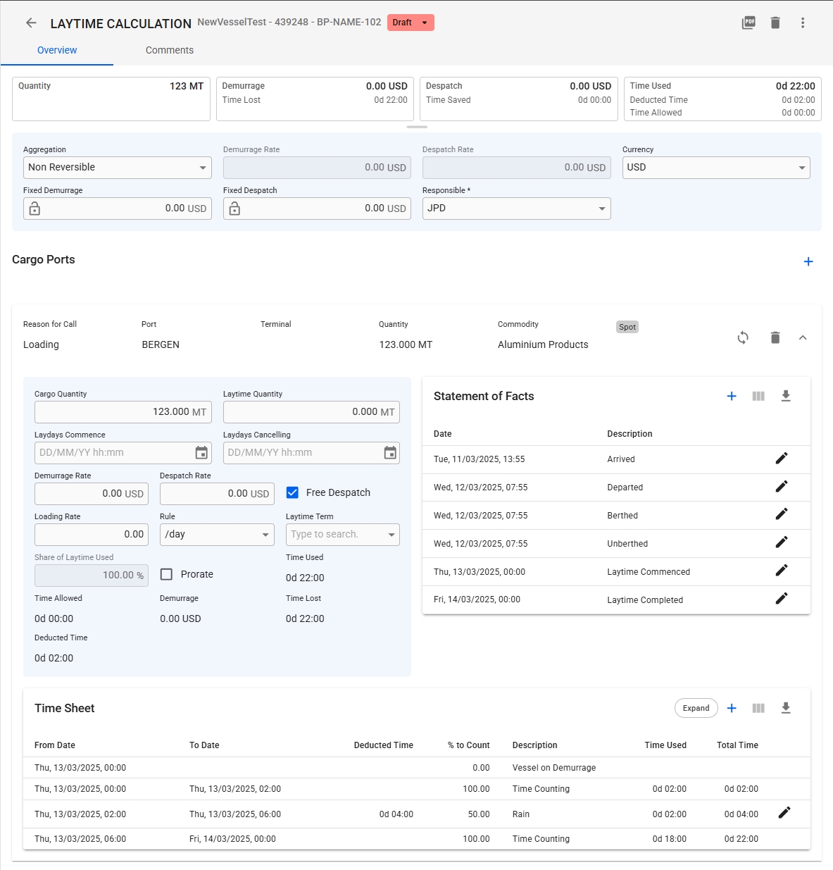 Expand the Laytime Calculations to access the Cargo Port Panel List.