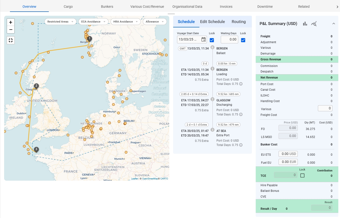 Note: Editing is only enabled if the voyage start date is fixed.