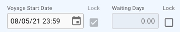 Within the Schedule section, you will find a checkbox for locking the update of voyage start date and Waiting Days. This checkbox is not enabled while the voyage has status Estimate or Unallocated: