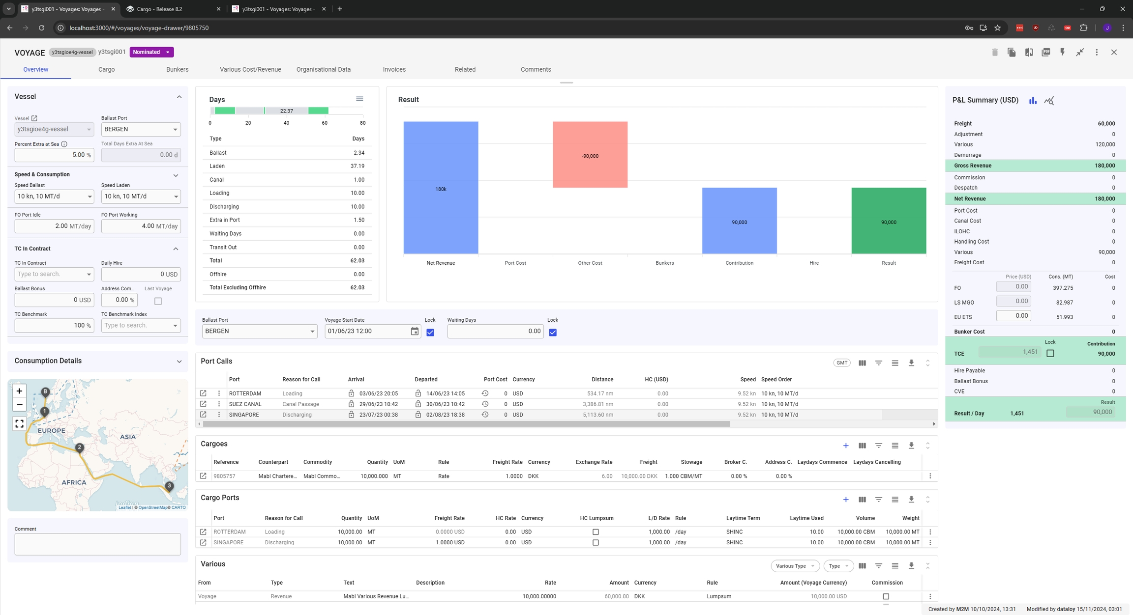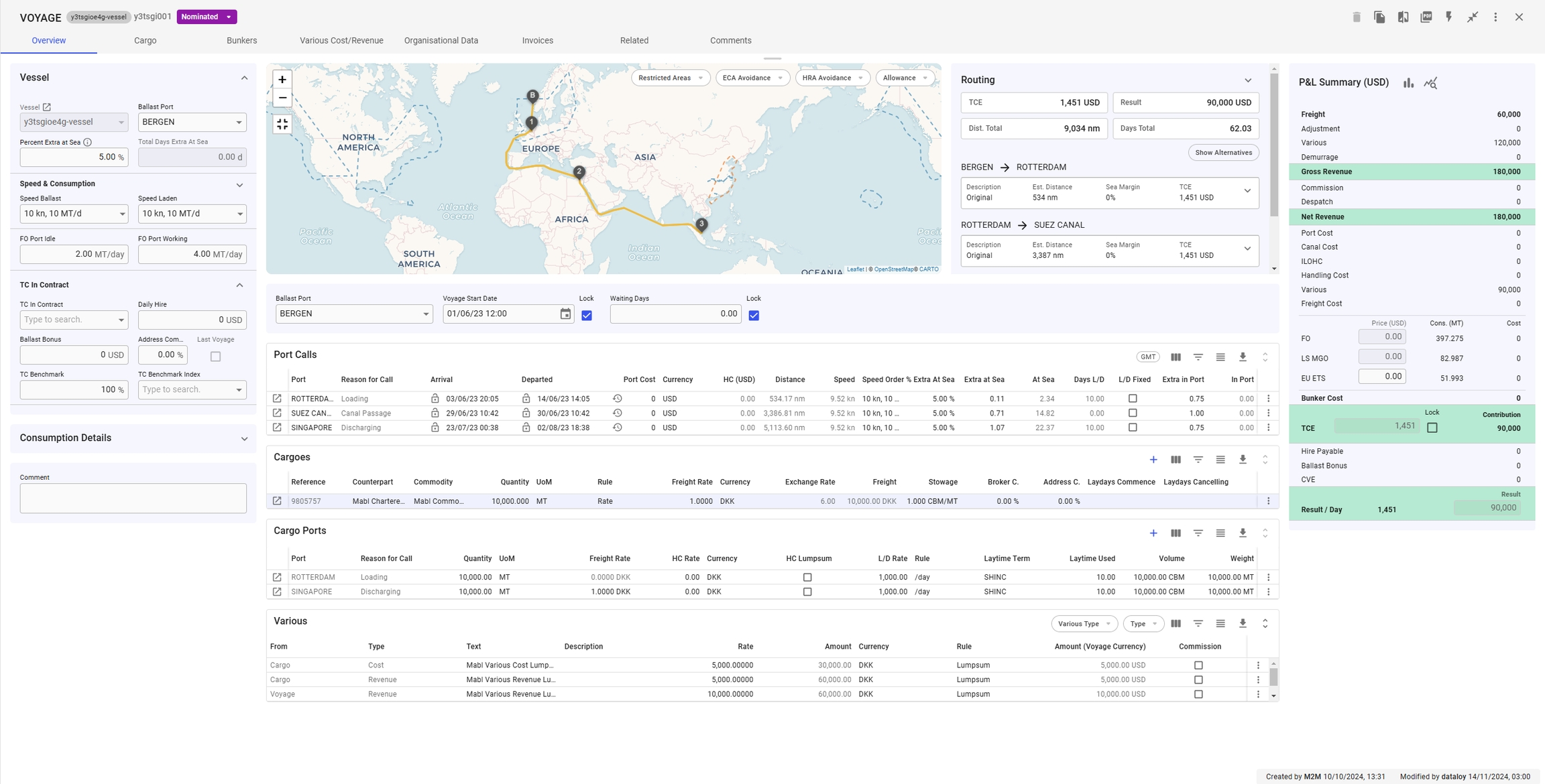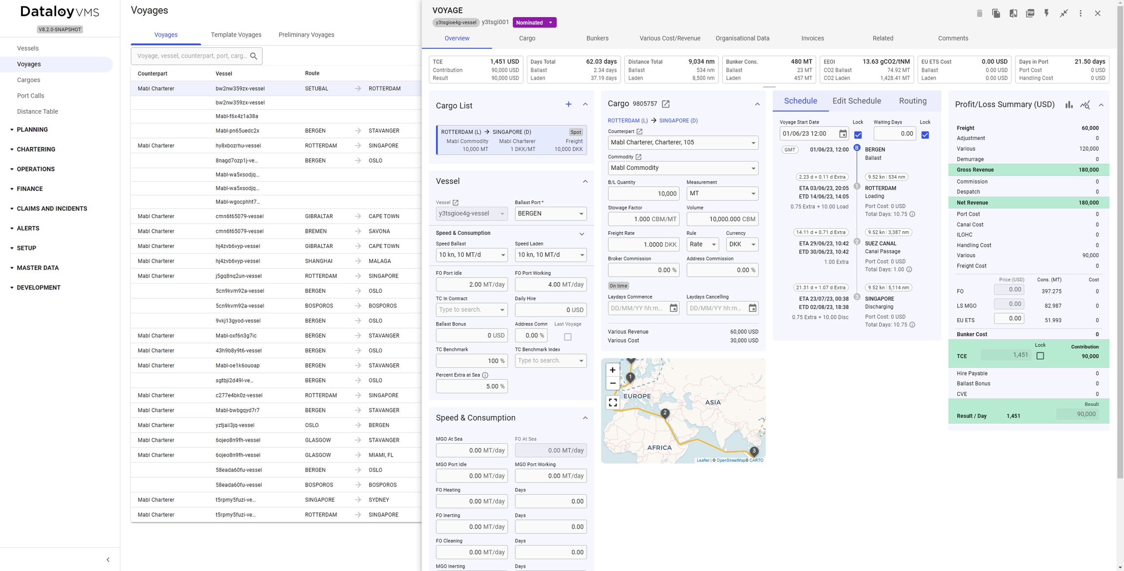 The Profit / Loss Section as well as the Vessel Section remains the same with the exception of an additional collapsible section for TC Out Contract.
