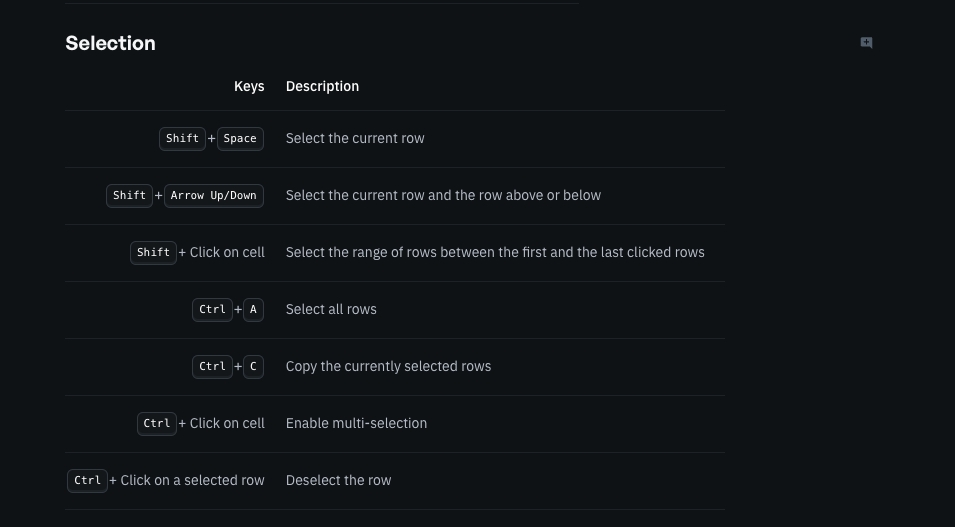 Using keyboard shortcuts is a powerful way to boost efficiency when working with the grid. Below are general instructions for using the grid, while Figures 9–11 list available shortcuts along with brief descriptions.