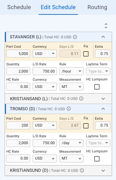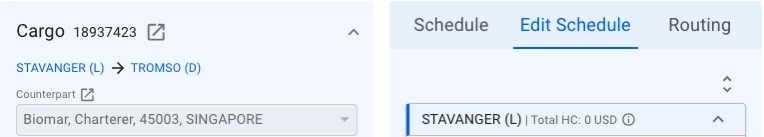 A section in a Voyage drawer found in the third tab of the Schedule module