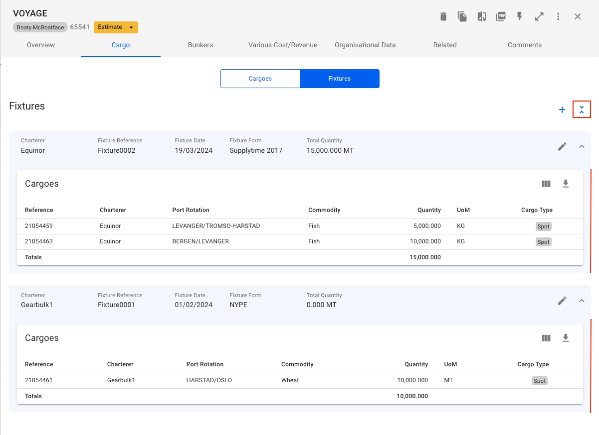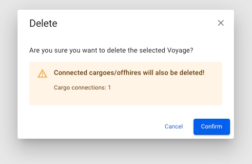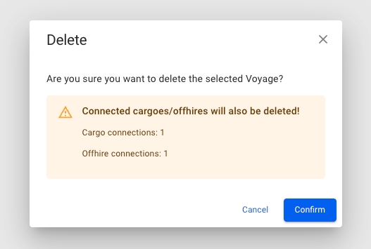 Note, If the status of the Voyage is closed, it is not possible to make any updates or changes to that particular Voyage.