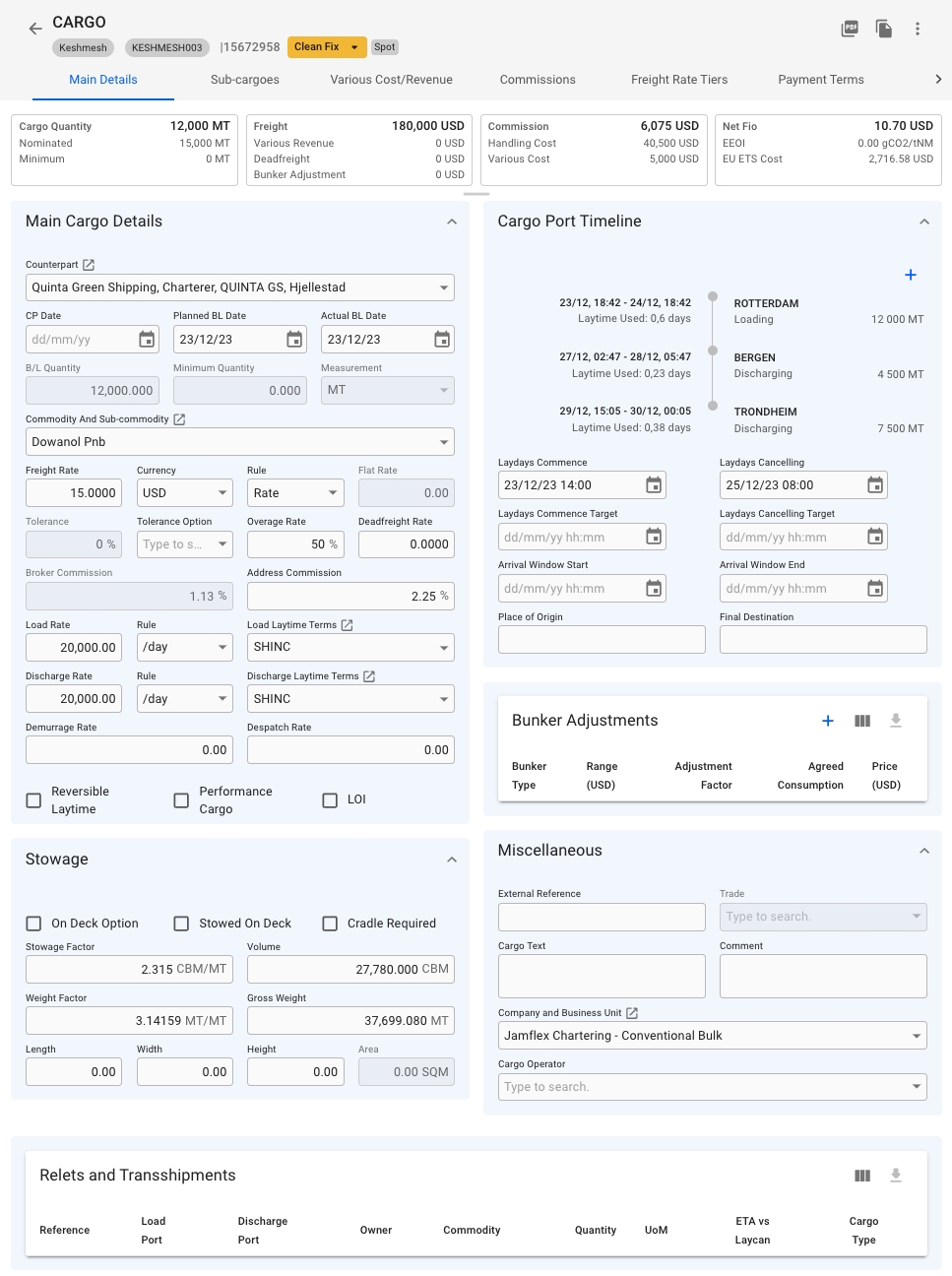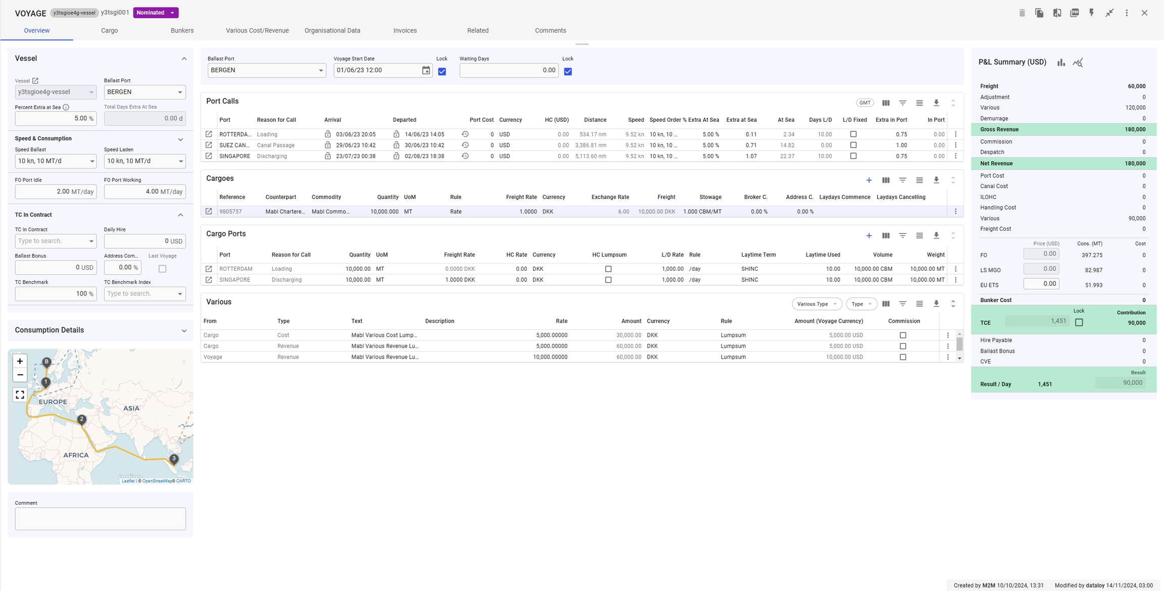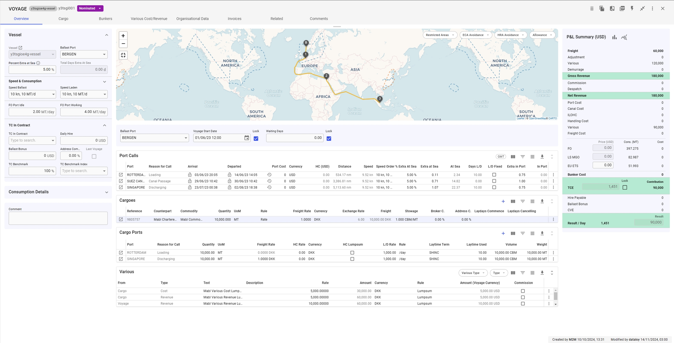 The Various Cost/Revenue feature allows you to manage cost and revenue entries associated with a voyage, including those linked to and These entries can be accessed and modified from the Various Cost/Revenue tab in the voyage drawer.