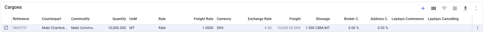 Is set to Freight Rate value when creating a new cargo, or copying a cargo, by default. The field can be changed to a desired value after creation.
