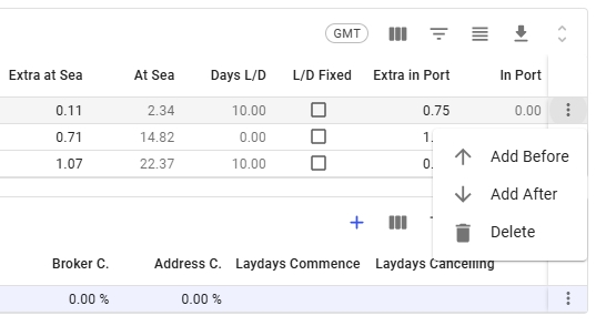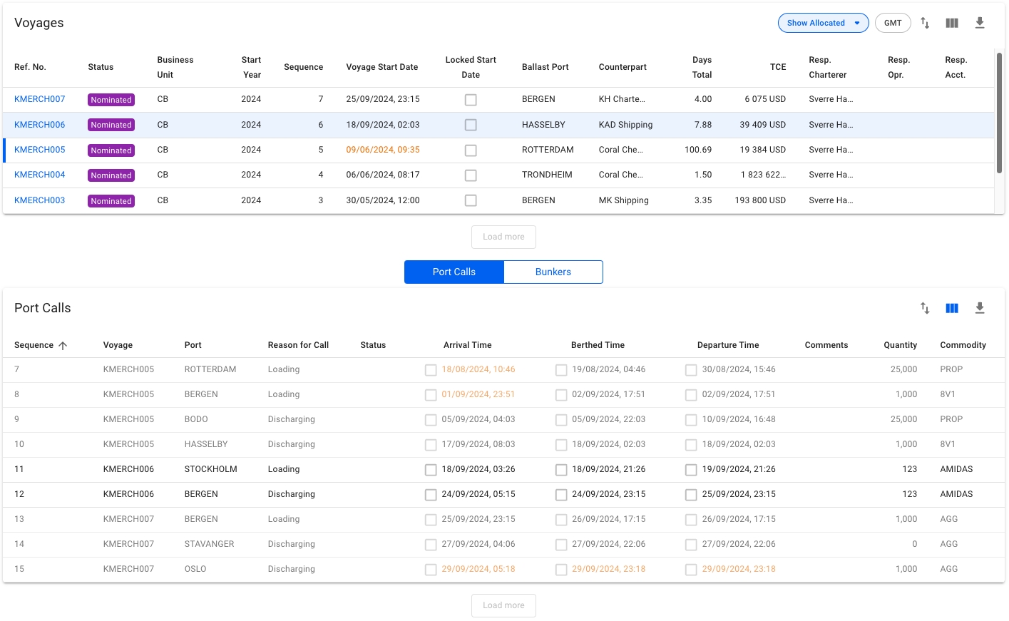 In this particular list, you are able to search for a voyage's reference no., a vessel, a counterpart or charterer, a port name, a cargo reference or trade. The list will update accordingly.