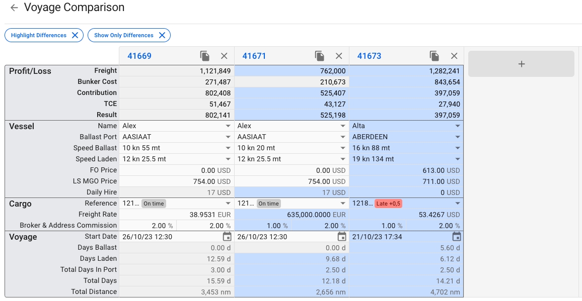 This function is particularly useful when freight rates are low, voyages must adhere to strict schedules, or deviations are required for compliance. It helps determine whether an additional detour can generate enough extra revenue to offset the added distance, time, emissions, and fuel costs.