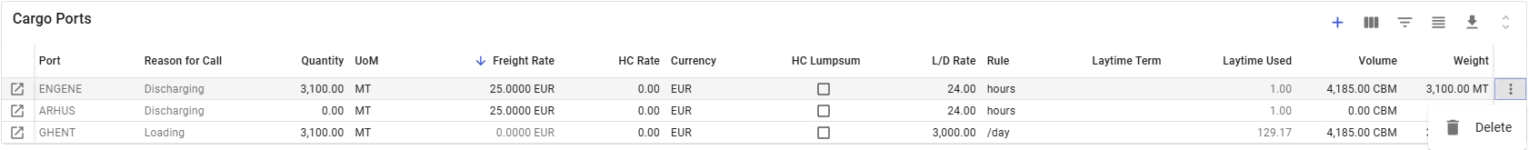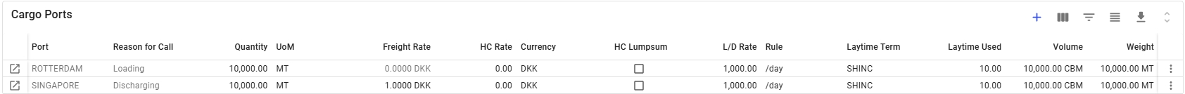 Cargo Ports have been moved from the collapsible "Cargo List" to a dedicated grid, improving accessibility and increasing maintainability and flexibility when editing cargo ports.