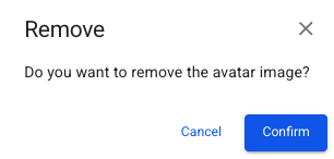 <figure><img src="https://content.gitbook.com/content/UXBUSBEFFjS09JYc1Hu5/blobs/IRuqhr5xTISCB9HW4EXd/image.png" alt=""><figcaption><p>Confirmation modal delete avatar image</p></figcaption></figure>