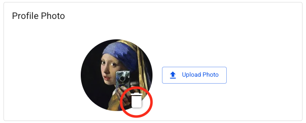 To remove the uploaded avatar, hover over the profile photo and click the delete icon.