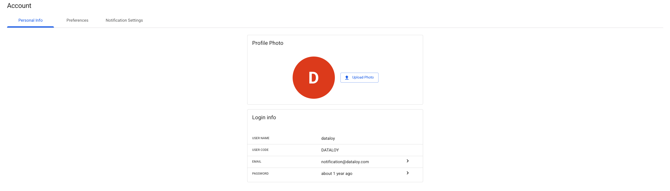 To change your avatar, go to the **Personal Info** tab, and click **Upload Photo**.
