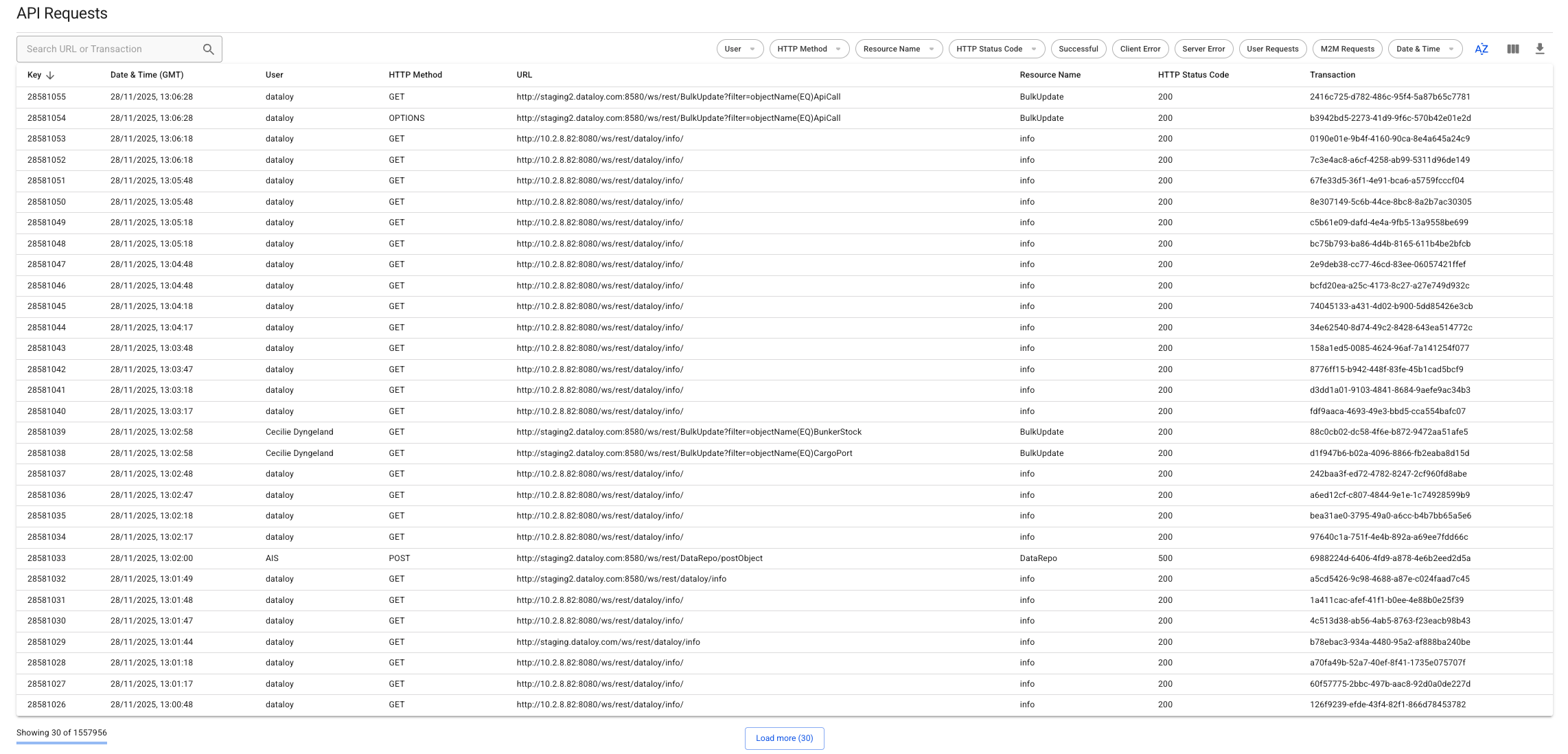 API Requests provides an overview of all API calls made in the system. The page is accessible for administrators from the Setup menu.