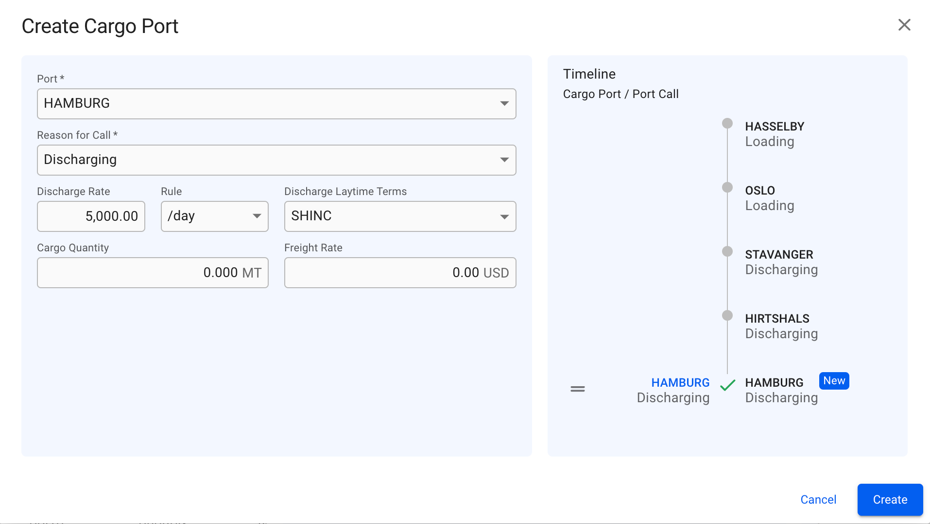 Create Cargo Port modal: