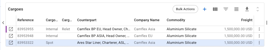 The system will create two additional cargoes with Company and Counterpart automatically assigned.