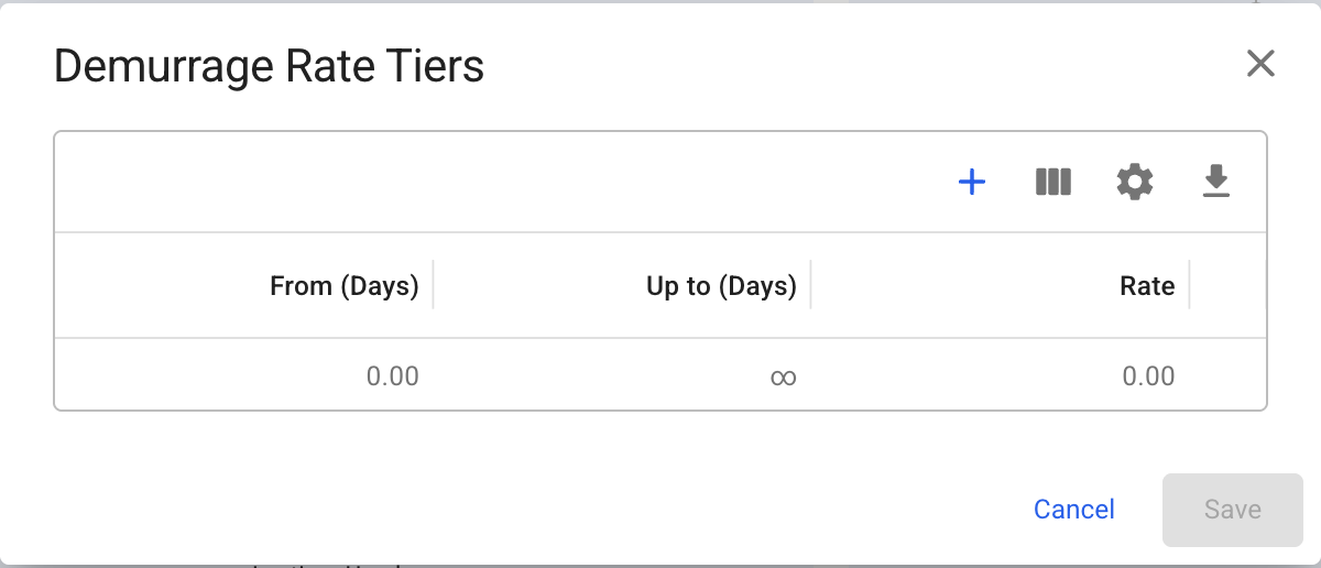 <figure><img src="https://content.gitbook.com/content/WoySkL2wtBxvxqGI8yWa/blobs/2KqnztU5BLKyk3ZoxYwc/image.png" alt=""><figcaption><p>Clicking the icon opens the 'Demurrage Rate Tiers' modal</p></figcaption></figure>
