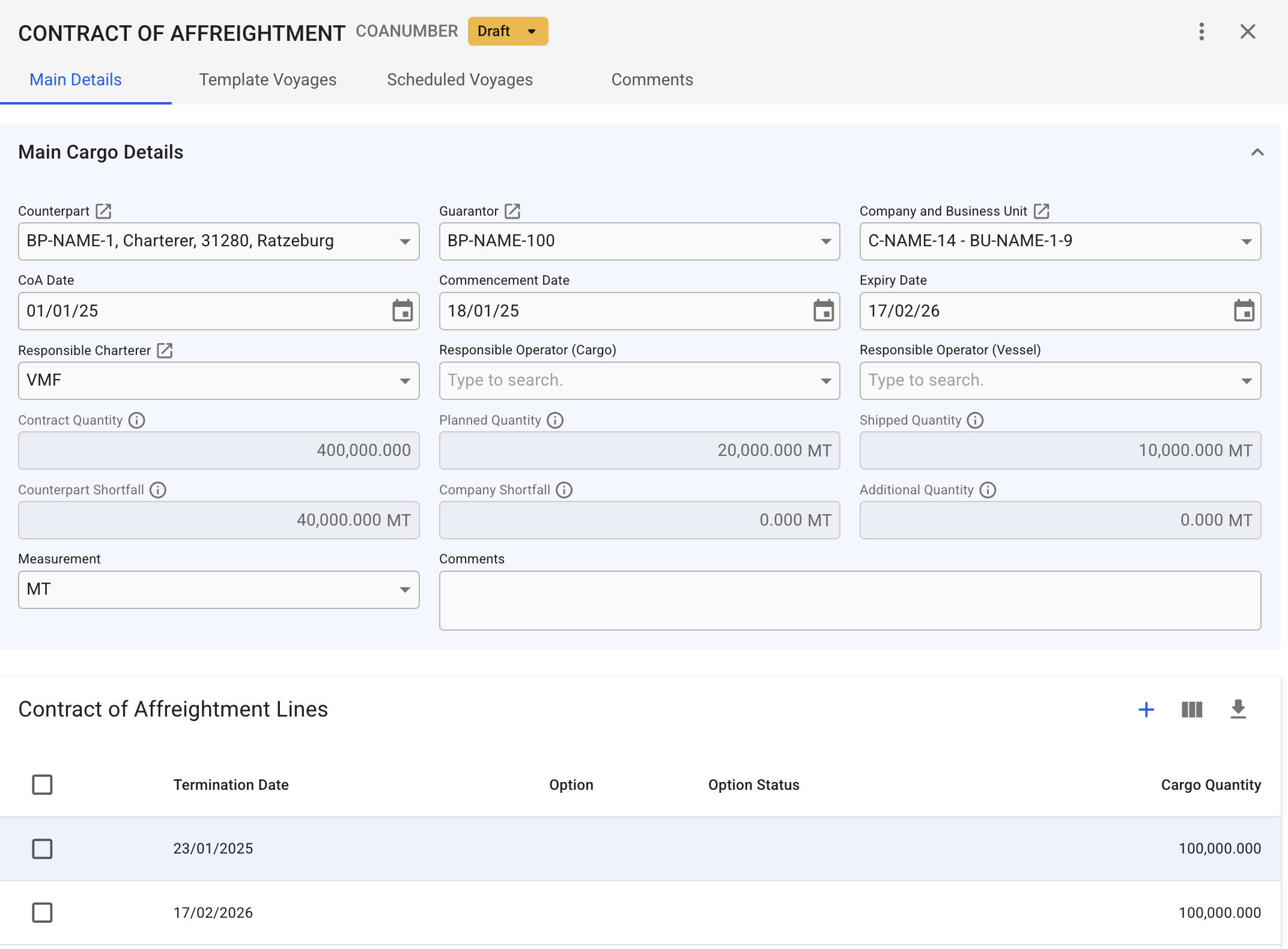 Read more about CoA Lines here: Contract of Affreightment Lines.
