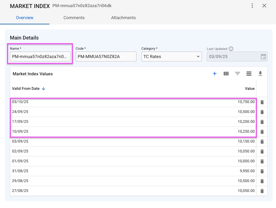 In the Index-Based Rate section, you can specify a particular Index (Market Index) the TC rates should follow.
