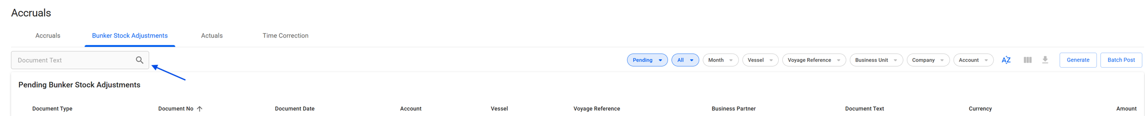 Generating Bunker Stock Adjustments