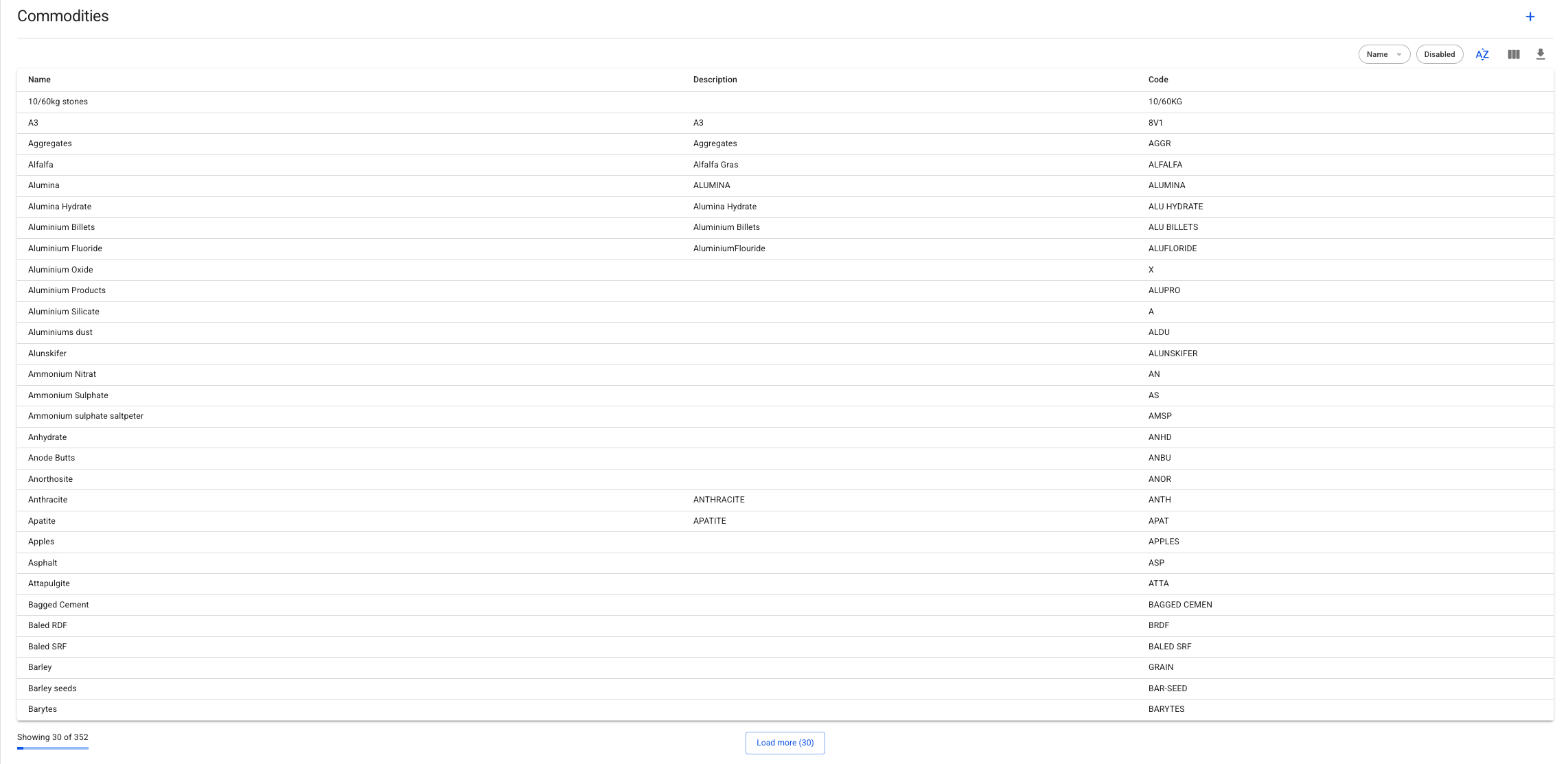The Commodity Module provides an overview of available Commodities and their properties.&#x20;