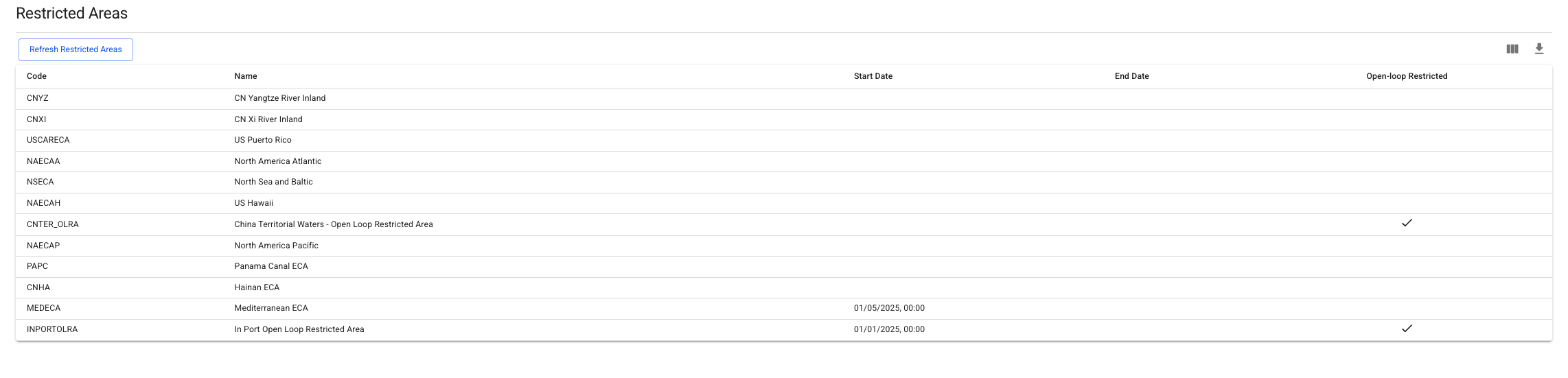 To support this regulatory change, the **Mediterranean Sea (MEDECA)** has been added to the list of Restricted Areas in the system. This ensures that voyages through the region comply with the new regulations. *(See Figure 1 for reference)*