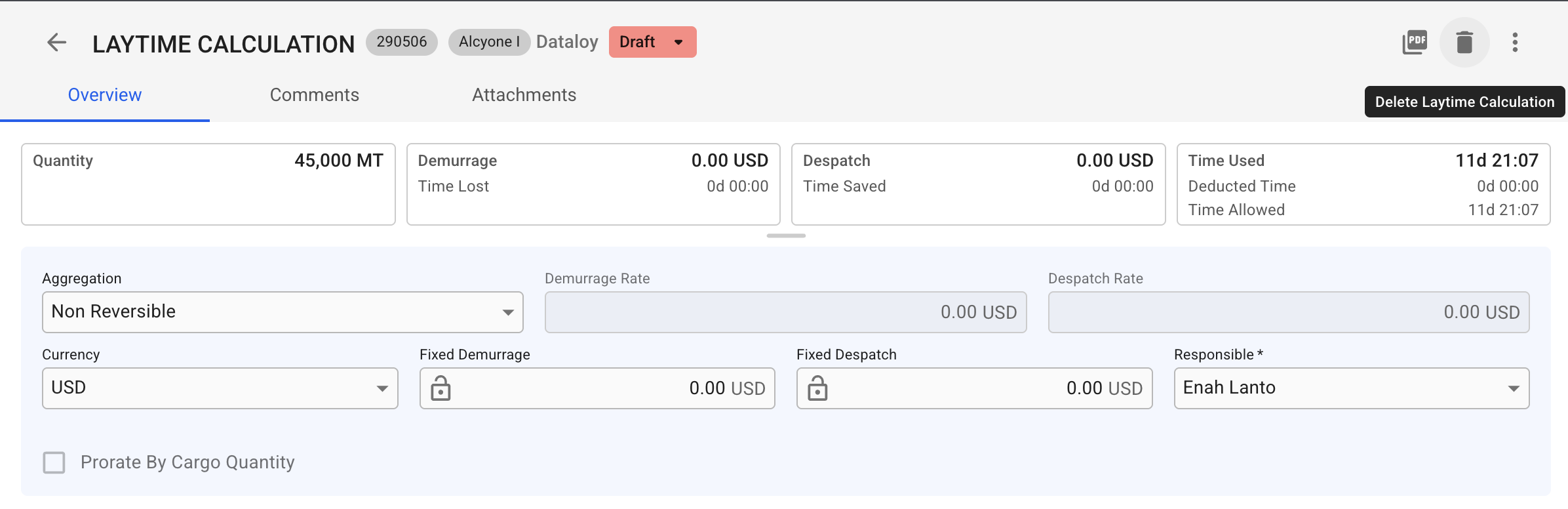 # Delete Laytime Calculation