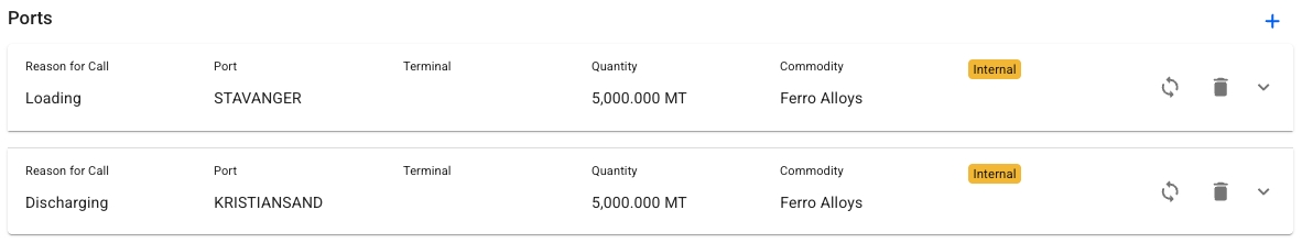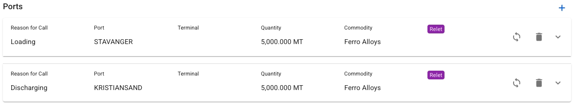 To make it easier to identify which cargoes are relet and connected to a spot cargo, a chip has been added to the section header. See the figures below.