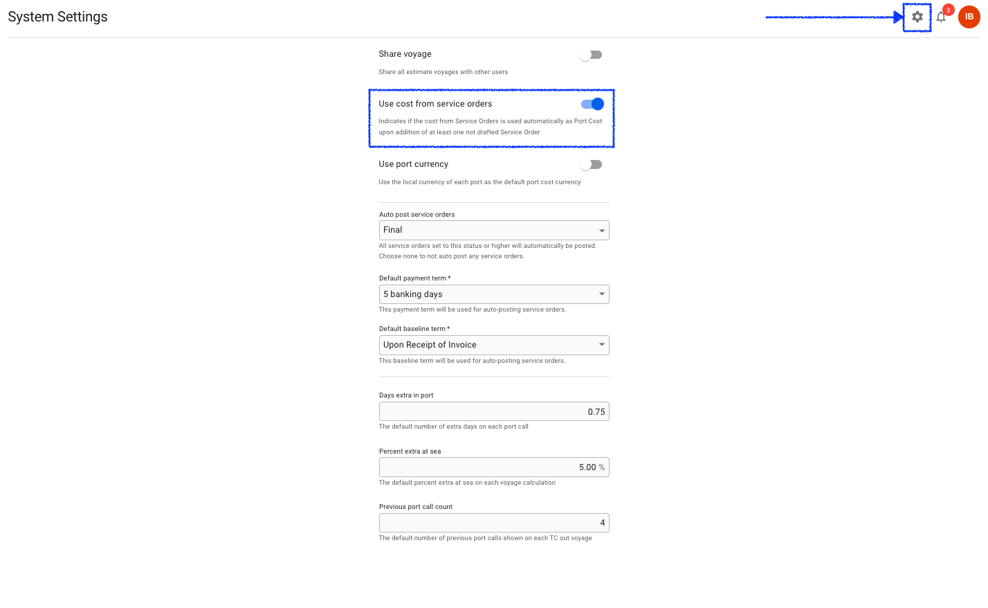 Once this functionality is enable the Use Cost from Service Order checkbox in the Port Call drawer will be disabled and the users will no longer be able to override this.&#x20;