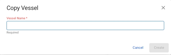 Clicking Copy Vessel will open a Copy Vessel modal where you are prompted to enter a new name for the new copy.
