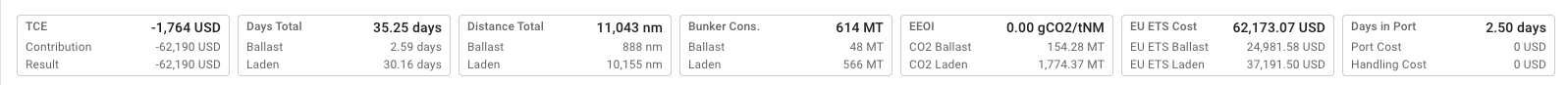 Tiles show the key values like TCE, Days Total, Distance Total, Bunker Consumption, EEOI, Days In Port, of the voyage.