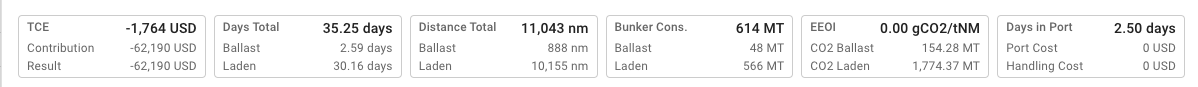 TCE Excl. Offhire is: Contribution divided by (Total Days of the Voyage - Total Days Offhire)