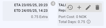 When hovering the mouse over a port call in the schedule, a toolbar in the upper right will appear.