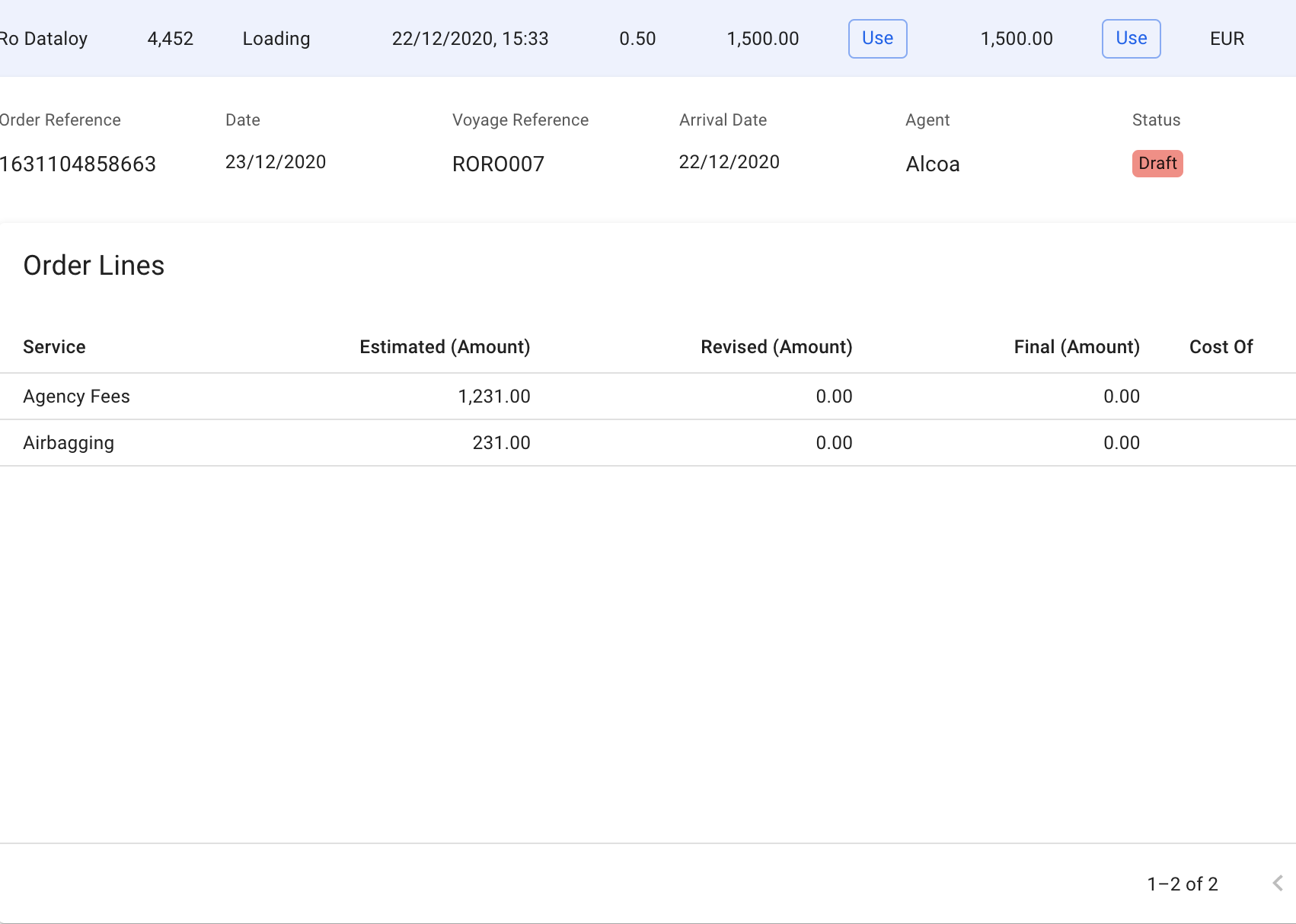 If one or multiple Service Orders are present on a Port Cost the rightmost corner of the row will show an expandable arrow <img src="https://content.gitbook.com/content/WoySkL2wtBxvxqGI8yWa/blobs/WOcjDCPSrwTBR3fg1J2i/Screenshot%202022-12-20%20at%2007.53.38.png" alt="" data-size="line">